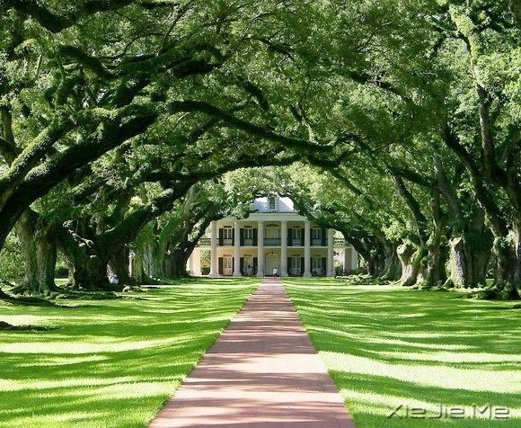 橡树巷种植园的树隧道长约240米,两旁的小橡树在18世纪初栽种。此后很久,照片中的房屋才开始建造。